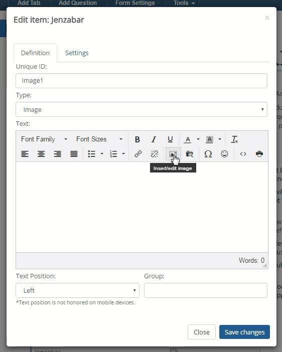 Images included using this method are not included in the form export. JICS handles these files outside of the normal method. If you plan to export or share your form, it is recommended you use the Image question type.